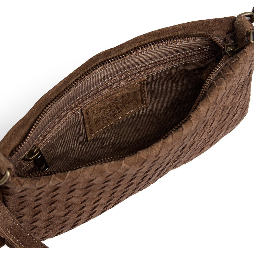 Denne clutchen er et raffinert stykke hverdagsluksus, som blander håndverk, eleganse og allsidighet i ett vakkert designet tilbehør. Laget av 100 % semsket skinn og utsmykket med et intrikat håndvevd mønster over hele vesken, tilbyr den et tidløst og eksklusivt uttrykk som passer både til hverdagsbruk og spesielle anledninger. Det myke semskede skinnet og den detaljerte vevingen gir et sofistikert preg som forbedrer ethvert antrekk.