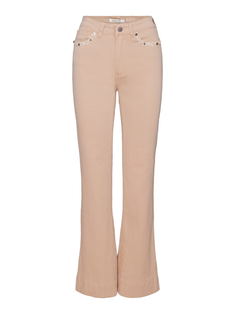 Høy på livet og pynt ved lommene i front, mye stretch som gjør den veldig myk.