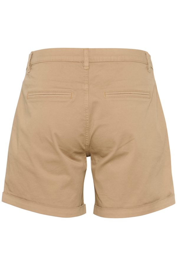 Chinoshorts med rett passform, oppbrettede ben og klassisk midje. Praktiske sidelommer og beltehemper inngår i designet.