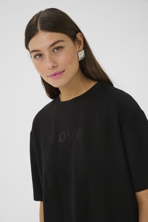 Denne oversized T-skjorten har rett silhuett, myk finish og klassisk rund hals. Brede korte ermer og subtil detalj på brystet gir et moderne preg.