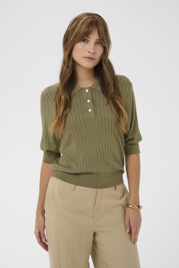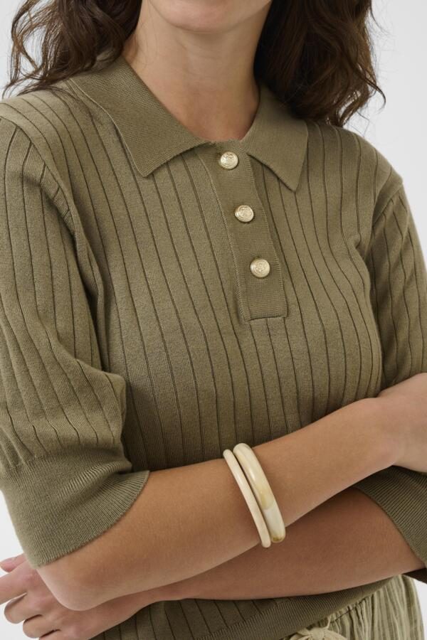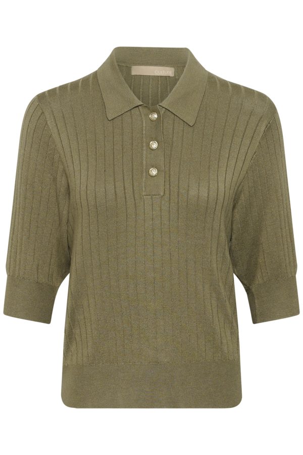 Stilig dusky grønn poloskjorte i myk, ribbestrikket kvalitet — perfekt for både jobb og fritid.