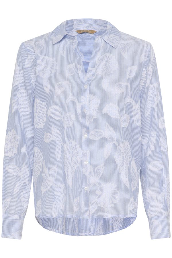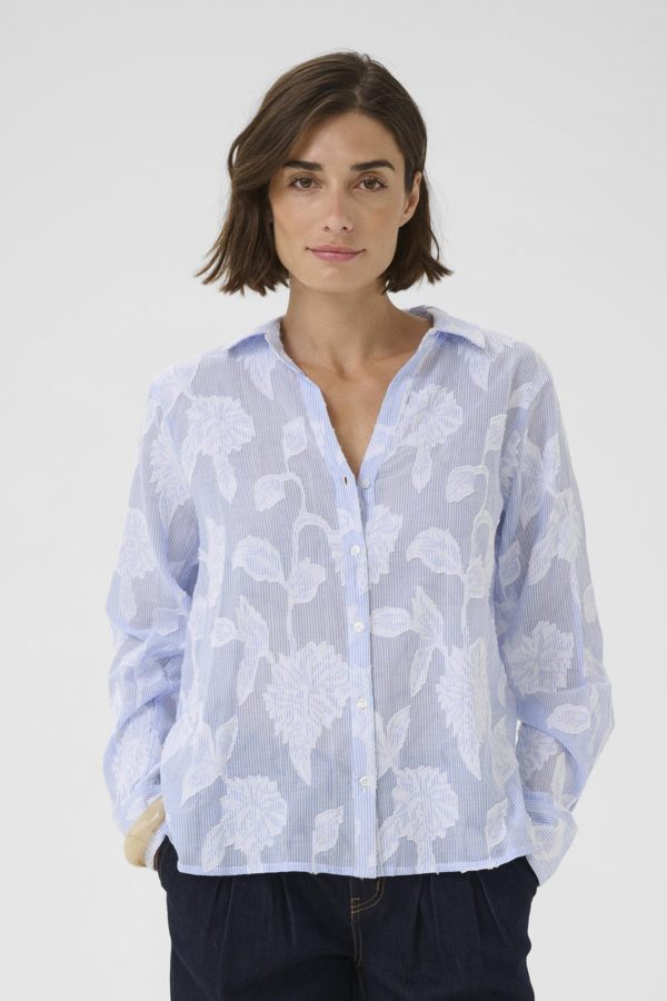 Button-up skjorte med rett, litt løs passform og klassisk krage. Lange ermer, lett gjennomsiktig og avrundet kant nederst.