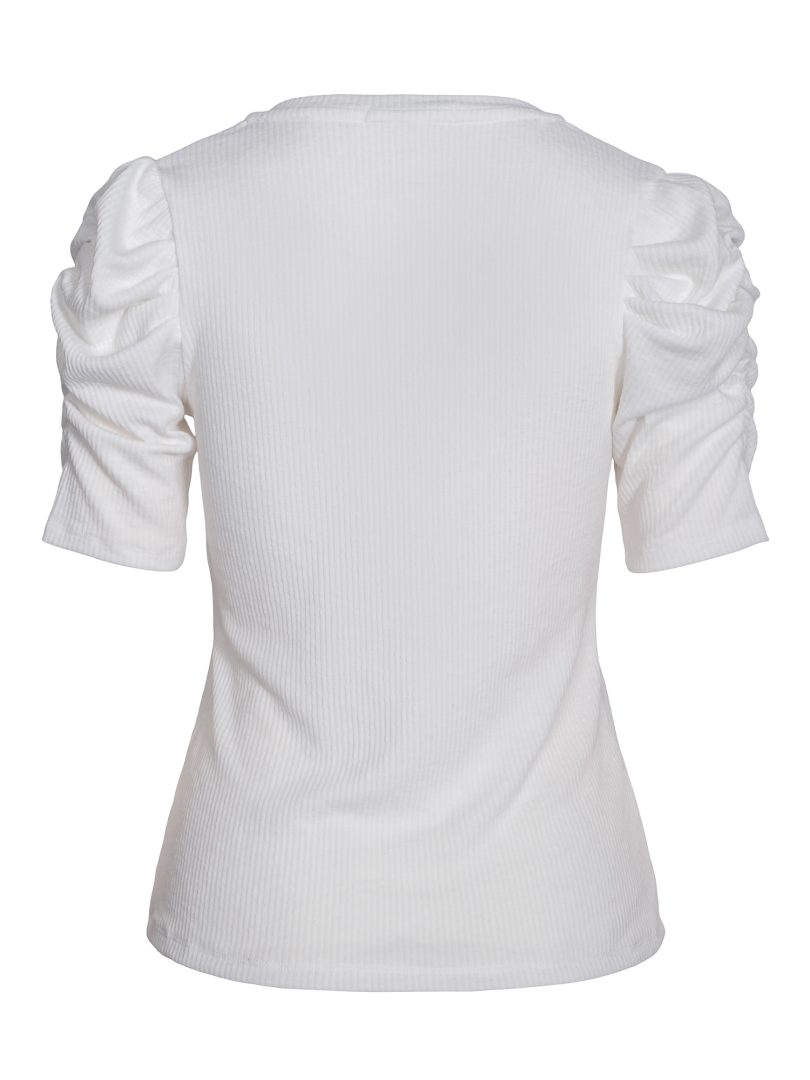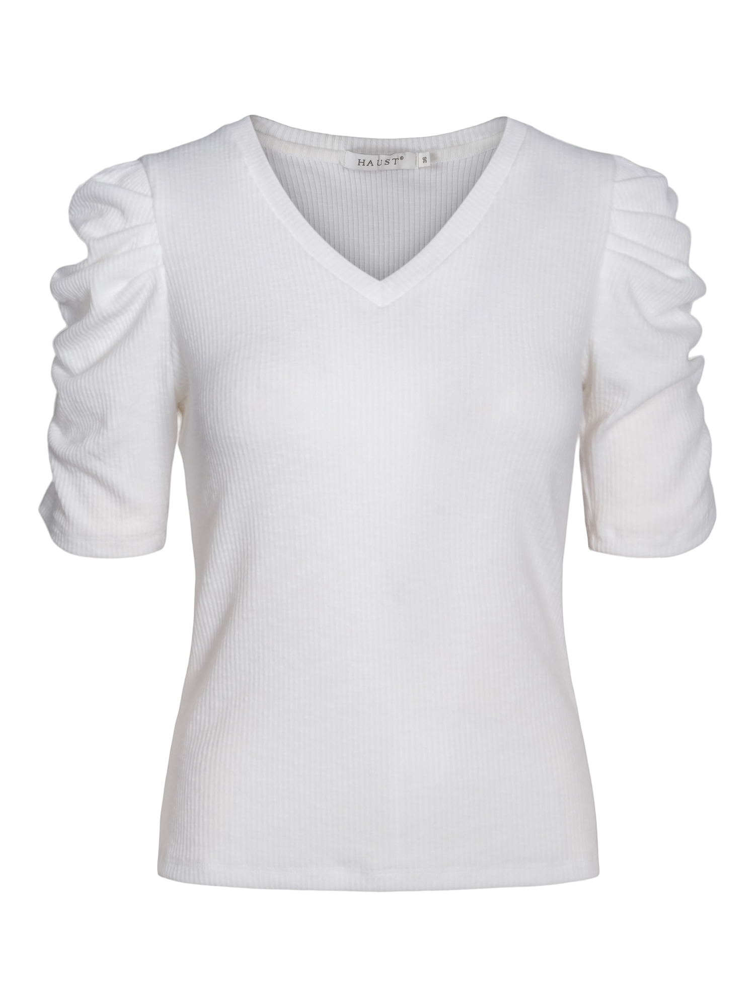 En myk og behagelig topp med ribbestrikket struktur, V-hals og feminine skulderdetaljer som gir et elegant preg. Materialblandingen med bomull, spandex og polyester sikrer god stretch og komfort hele dagen. Perfekt å style med både skjørt, bukser eller jeans for en avslappet, men vakker look. Et tidløst plagg som tilfører garderoben et feminint og stilig uttrykk.