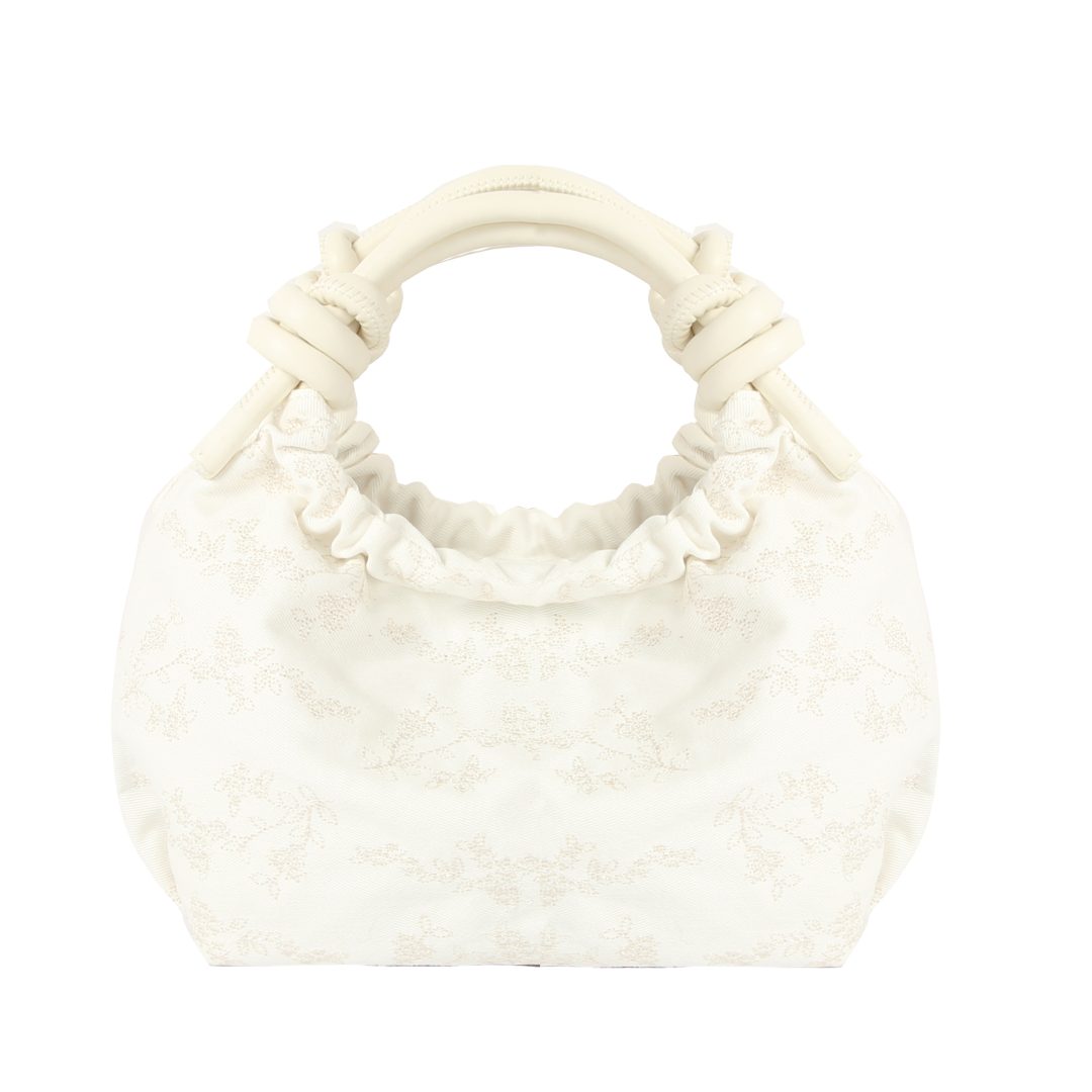 Denne mini-vesken har knutedetaljer på håndtakene og er en stilig måte å bære dine viktigste ting på. Den har magnetisk lukking, ett hovedrom og en innvendig lomme med glidelås. Laget av resirkulerte materialer.
