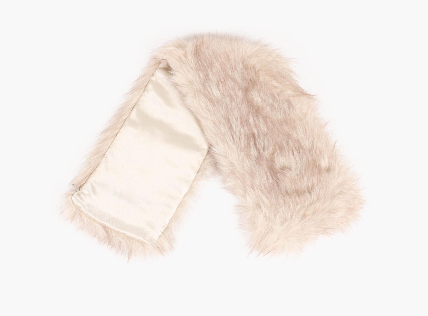 Kragen er laget i høykvalitets, syntetisk fuskepels som ser og føles ut som ekte pels – men er 100 % dyrevennlig og bærekraftig. Enkelt festes med diskret hempe foran, og gir antrekket det lille ekstra.