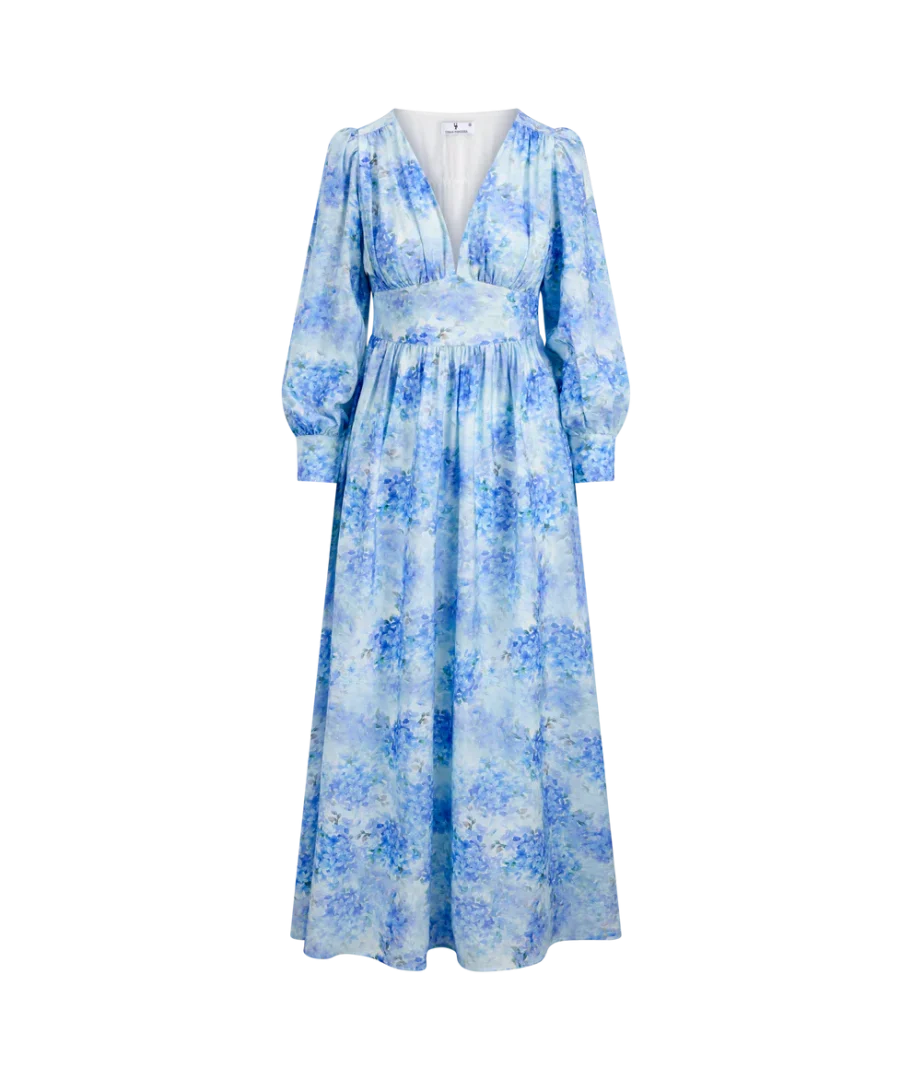 Livorno er en forlenget versjon av den ikoniske blomsterkjolen, skapt for yndefull bevegelse og en mer dramatisk silhuett. Med den samme smigrende V-utringning og mykt tilpassede midje, faller den ned til en lengre skjørt for en elegant, flytende finish. Laget av en bomullsblend holder utseendet seg skarpt, men er enkelt å ha på seg.