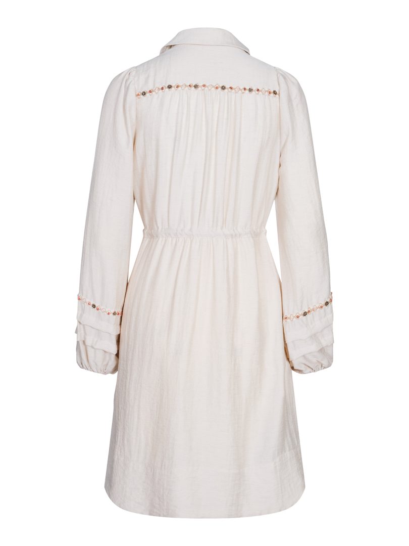 Lett kjole fra Haust , perlebroderte detaljer på ermer og skuldre.