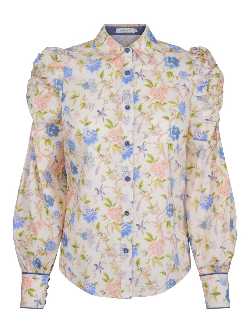 En tidløs bluse med et moderne vårpreg. Vår Sleeve Blouse er laget i 100% bomull for en myk og behagelig følelse mot huden, samtidig som den holder fasongen gjennom dagen. Blusen har en klassisk krage, elegant knappekant og lekre skulderdetaljer, samt det delikate blomsterprintet,. Det er nøye valgt for sesongen, og tilfører friskhet og femininitet til enhver look. Perfekt å style både til avslappet hverdag og mer formelle anledninger, dette er et plagg som kombinerer klassisk silhuett med sesongens farger og mønstre.
