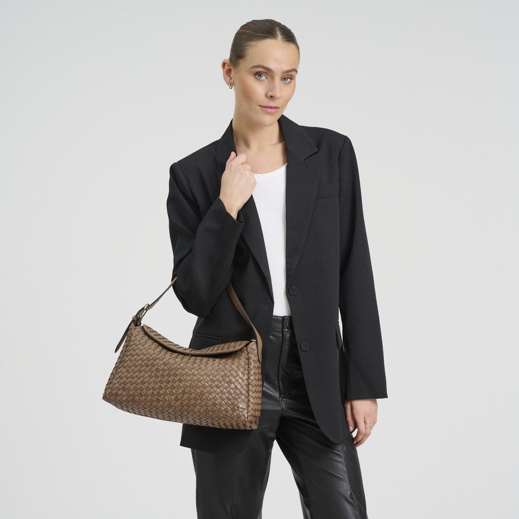 Sofya crossover er en raffinert og lett veske som blander eksklusivt håndverk med et feminint, sommerlig uttrykk. Vesken er laget av 100 % kalveskinn og har vakre håndvevde detaljer som gir tekstur, dybde og en sofistikert finish. Det vevde designet gir vesken en frisk og luftig følelse, noe som gjør den perfekt for både sommerstyling og bruk året rundt.