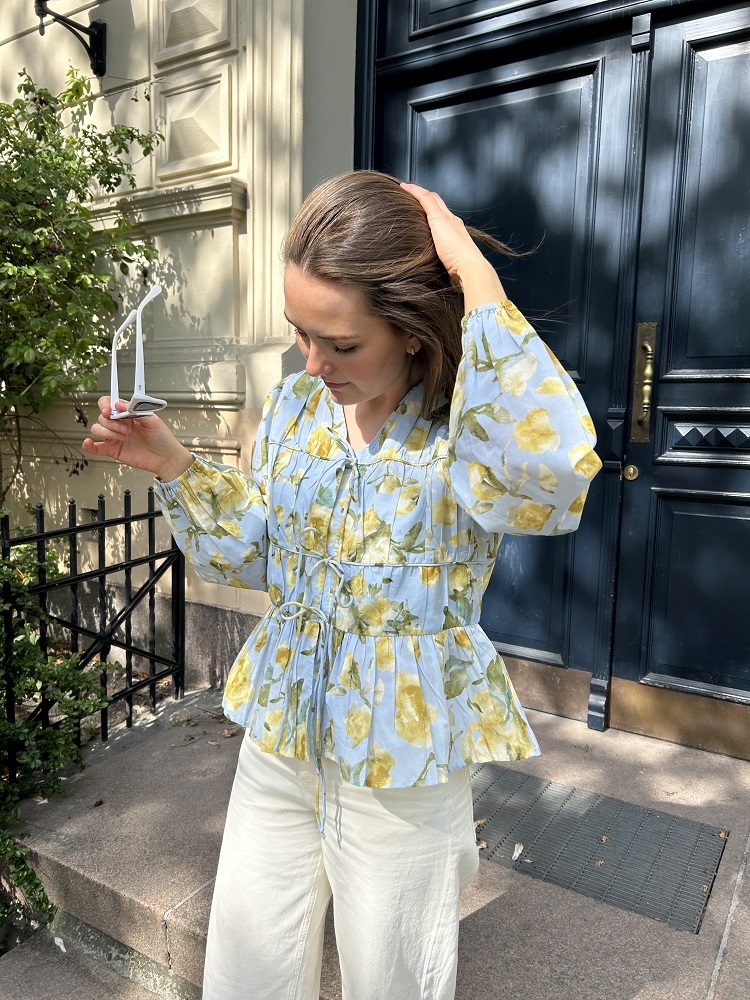 Denne blusetoppen har vi gledet oss masse til! Superskjønne detaljer med knyting fremme, v-hals og lange armer! Perfekt til en jeans!