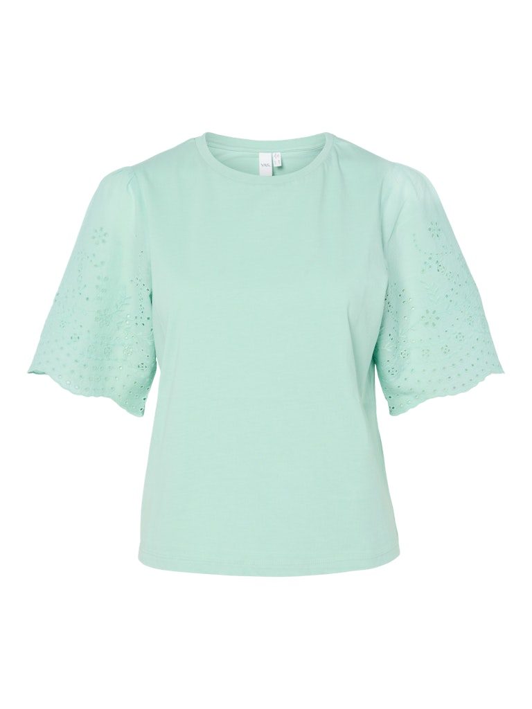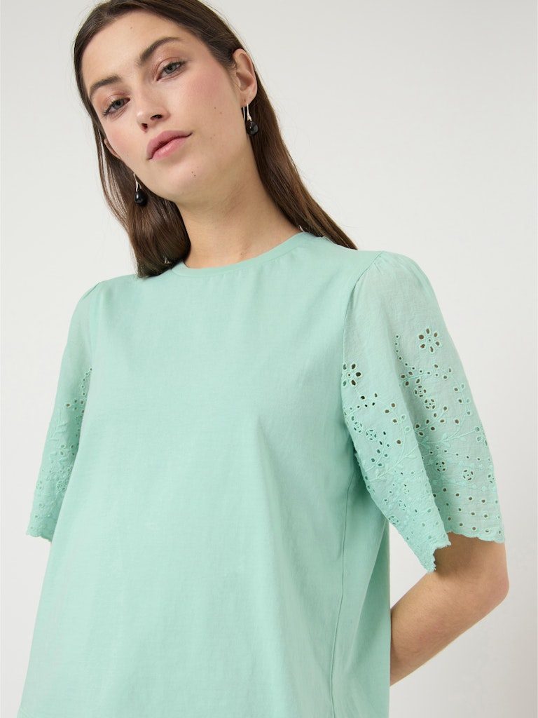 – Broderie anglais-detalj på ermene