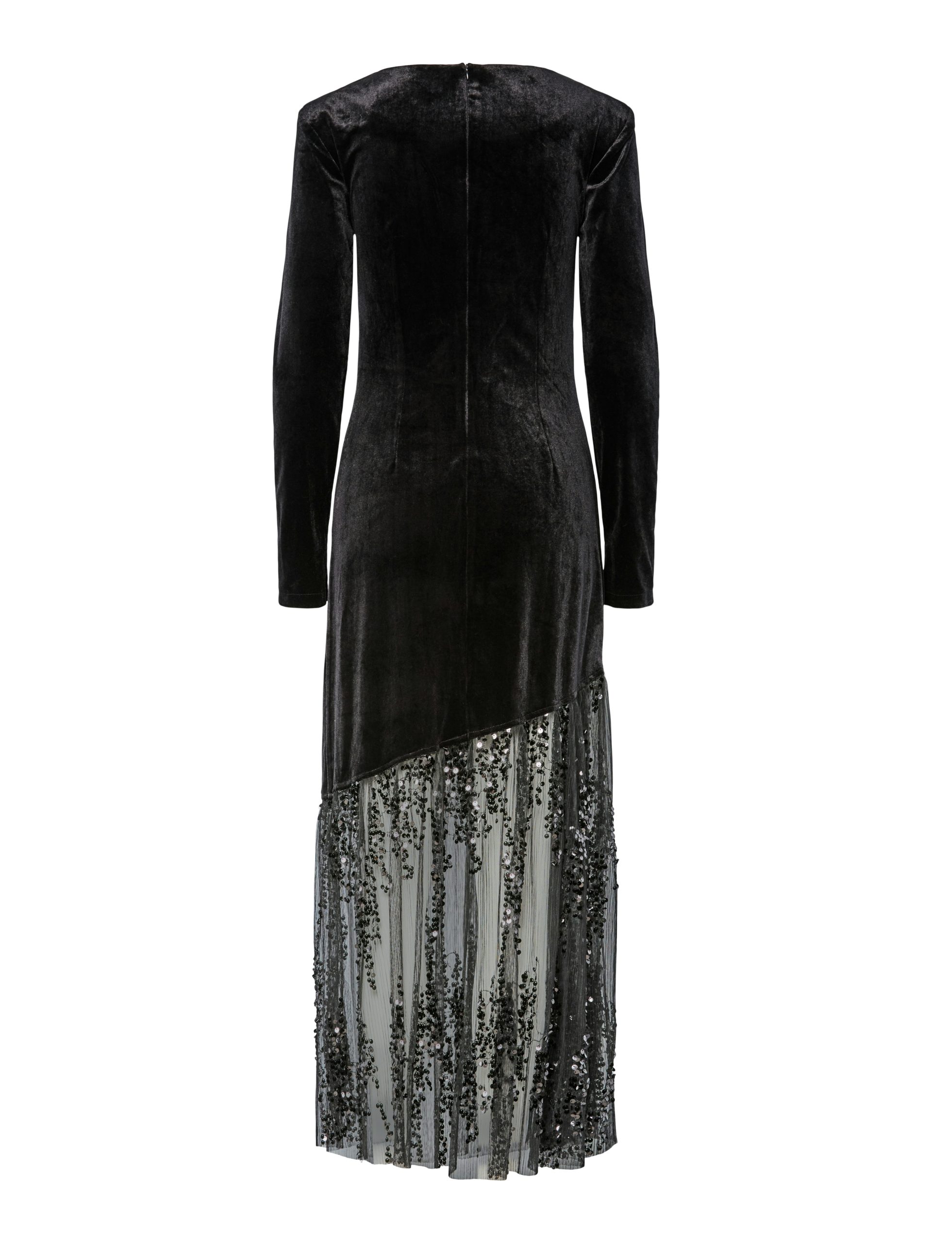 YASTERA LS LONG DRESS er en elegant og tidløs kjole i sort, perfekt for spesielle anledninger. Den kombinerer stil med komfort, takket være sitt myke og stretchy materiale. Vi anbefaler 1 str. opp pga smal fasong.